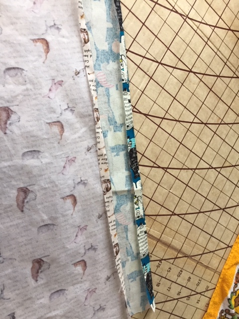 Fold one edge on each piece about a cm to the wrong side, press.