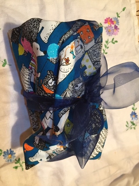 Although ballons no longer enviromentally good the pumps still remind me of parties, hope we get some new eco balloons one day. The present is wrapped in reusable fabric gift wrap, a present for anyone celebrating their Bearthday.