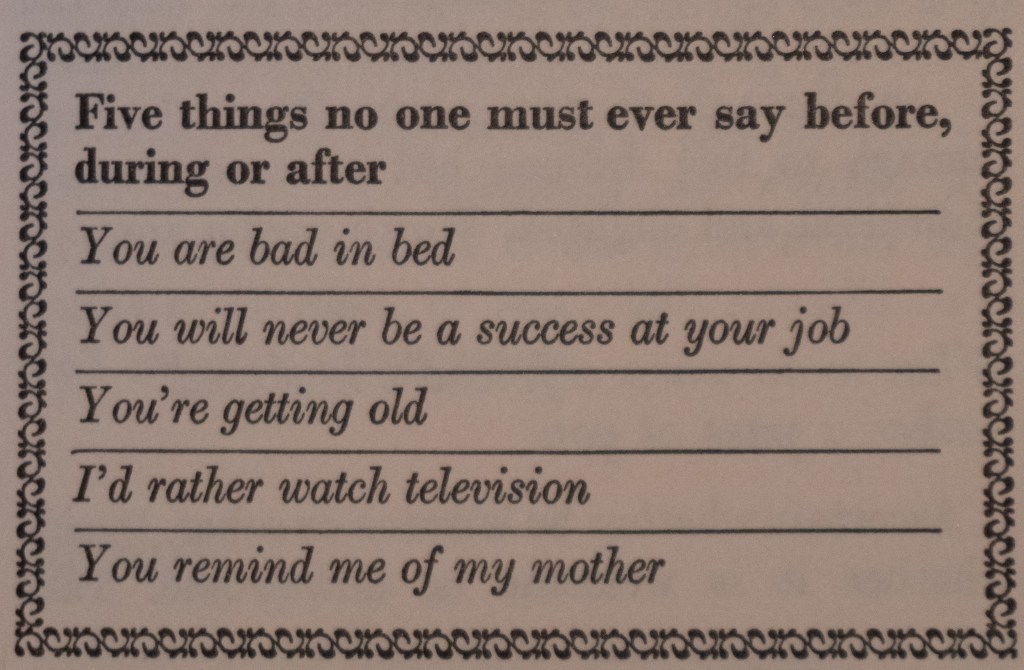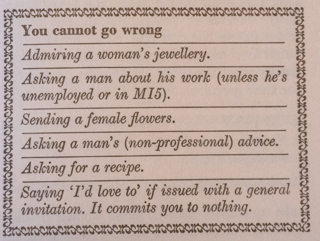Home sweet home. A selection of possibly appropriate music, for however you are feeling…Postcard from Banksy and a lovely apron of a happy couple, her toiling and him smartly dressed and offering a romantic gesture. Advice if needed from Katherine Whitehorn, might make you recognise yourself or others or not…